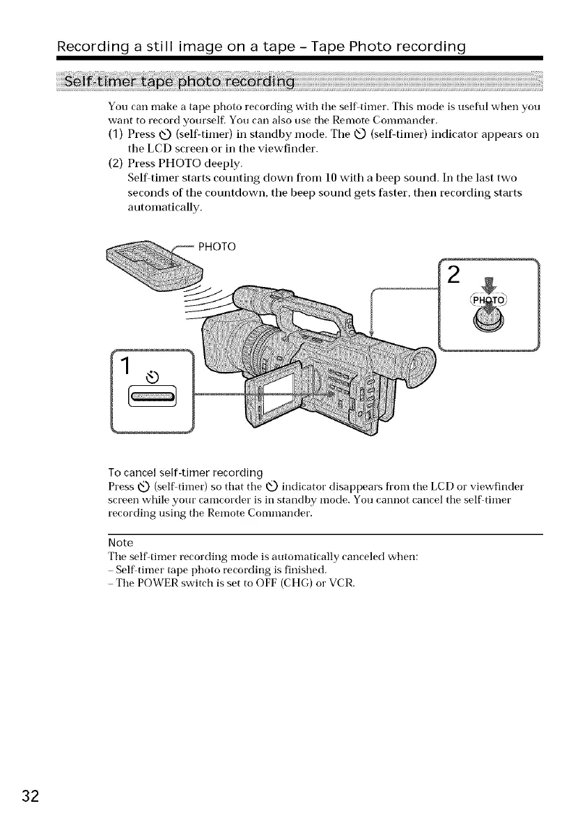 You can make a tape photo recording with the self-timer. This mode is useflfl when you