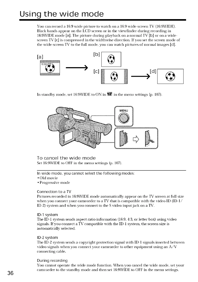16:9WIDE mode [a]. Tile picture during playback on a normal TV [b] or on a wide-