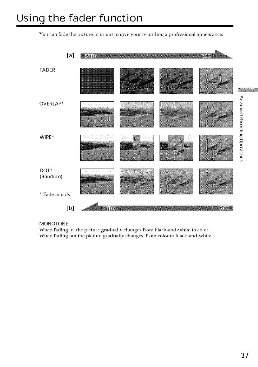 When fading in, tile picture gradually changes fl"om black-and-white to color.