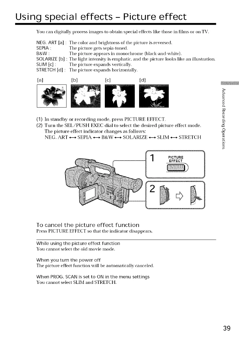 (1) In standby or recording mode, press PICTURE EFFECT.
