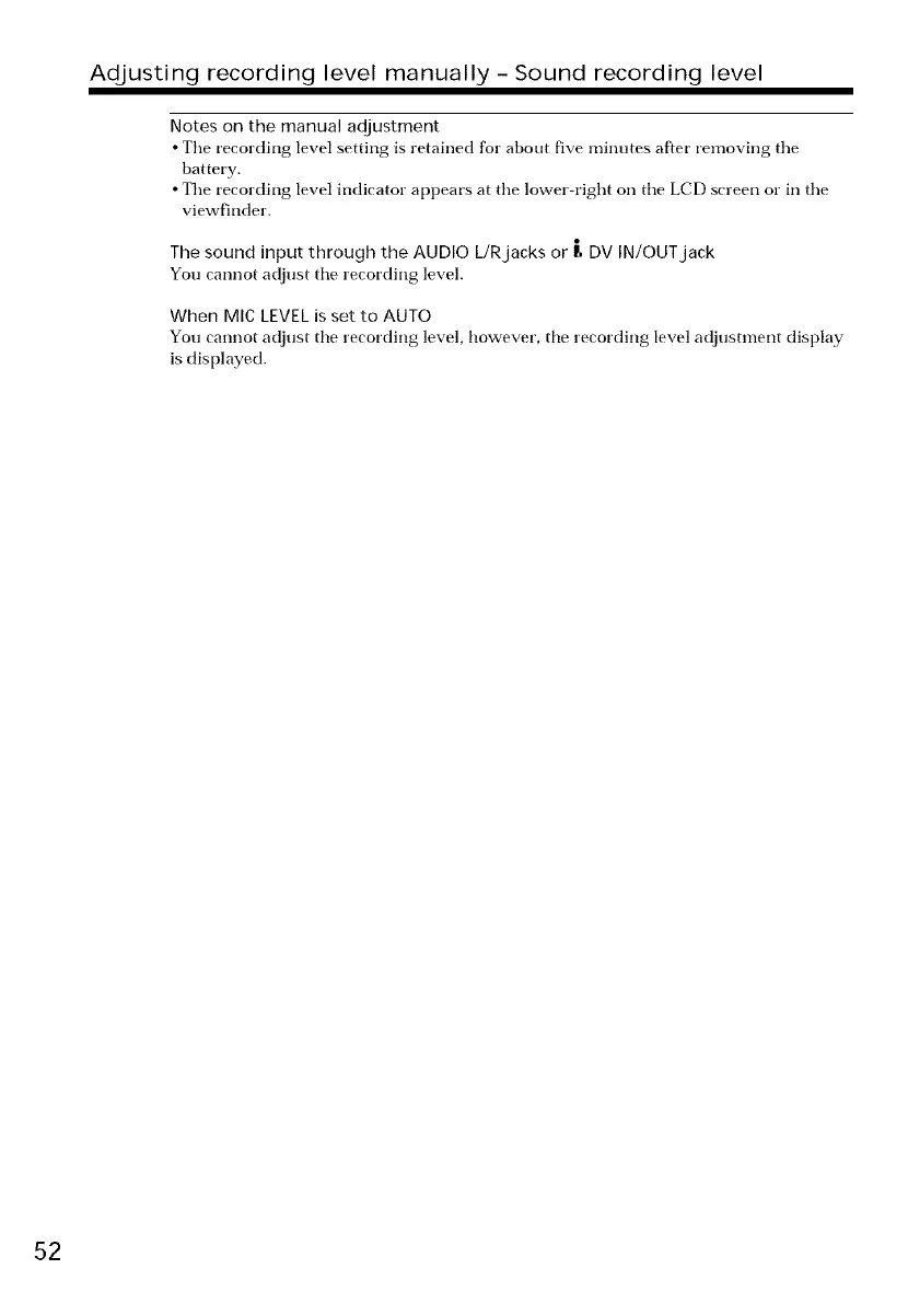 Adjusting recording level manually- Sound recording level