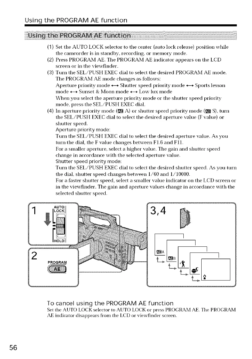 Set the AUTO LOCK selector to AUTO LOCK or press PROGRAM AE. The PROGRAM