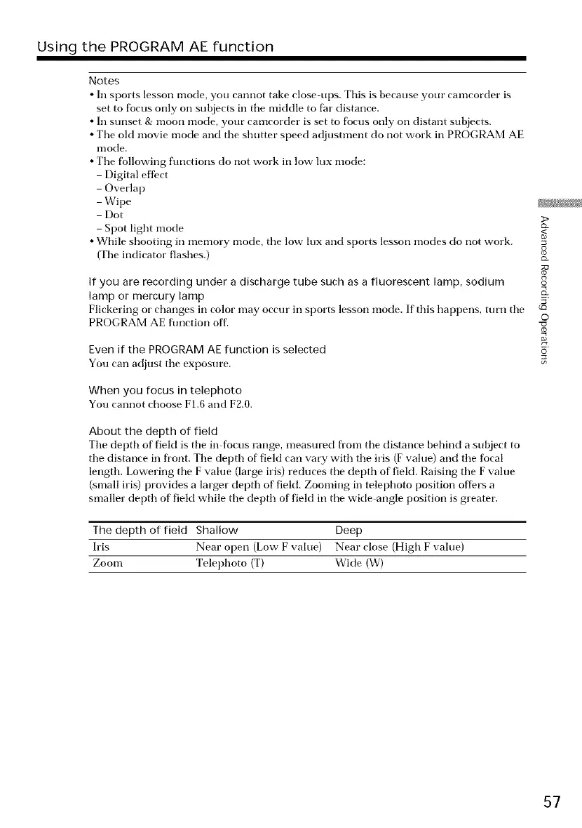 Using the PROGRAM AE function