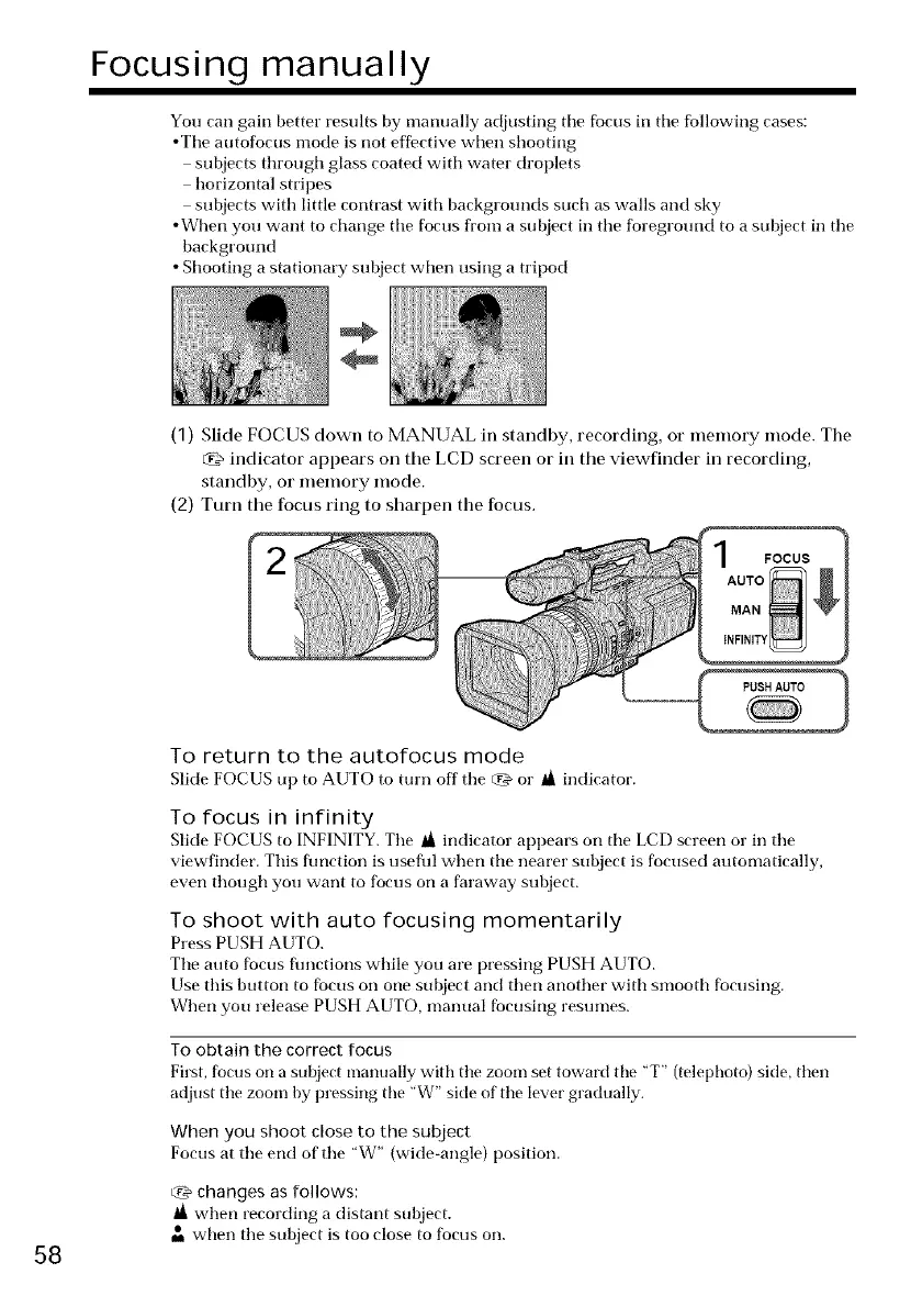 (1) Slide FOCUS down to MANUAL in standby, recording, or memory mode. The