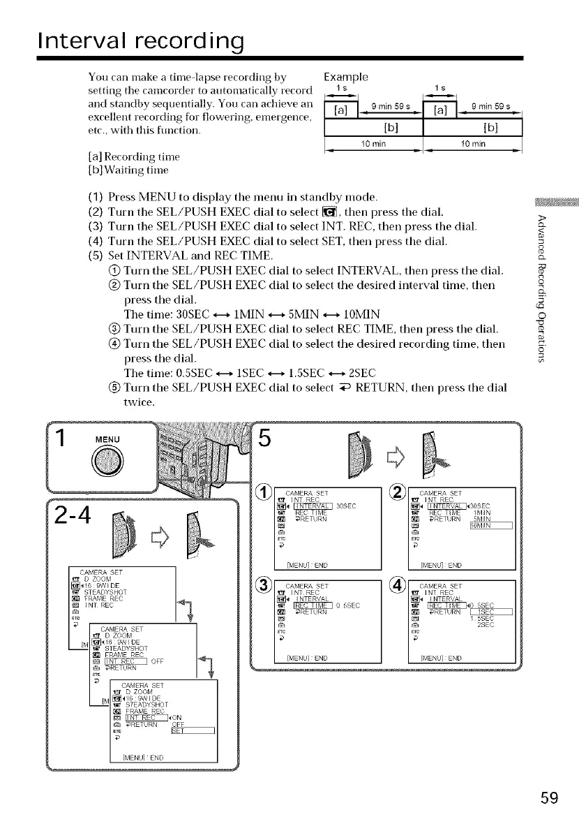 @ Turn the SEL/PUSH EXEC dial to select the desired interval time, then o