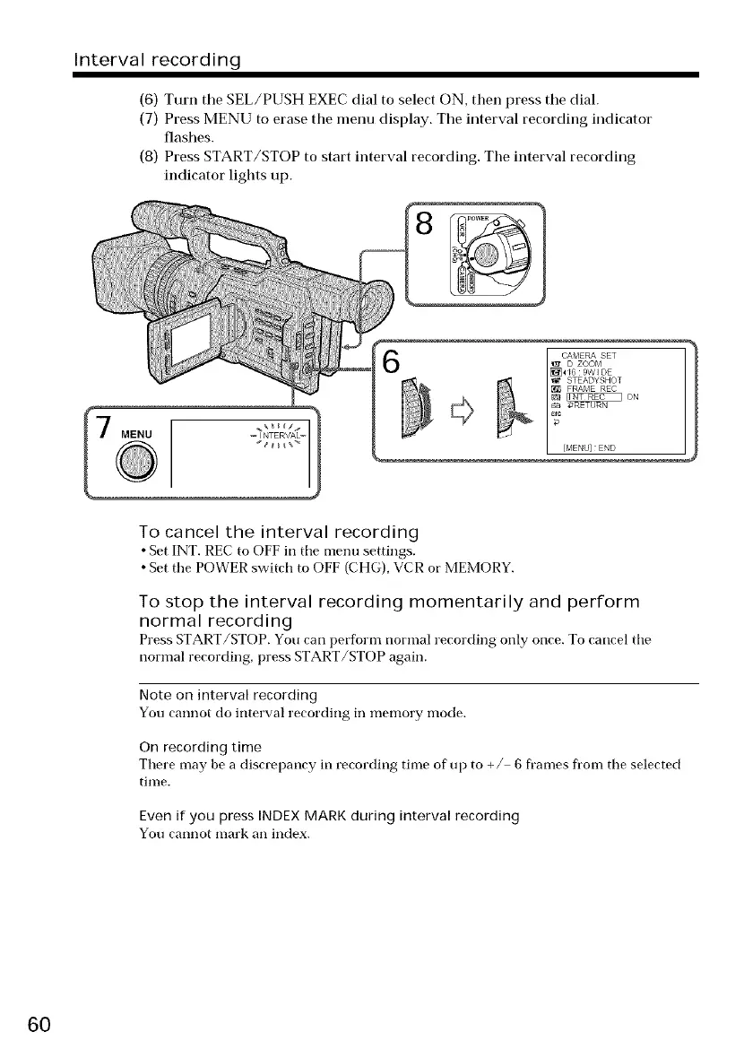 (7) Press MENU to erase the menu display. The interval recording indicator
