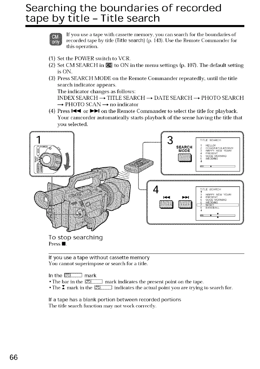 If you use a tape with cassette memory, you call search fbr tim boundaries of