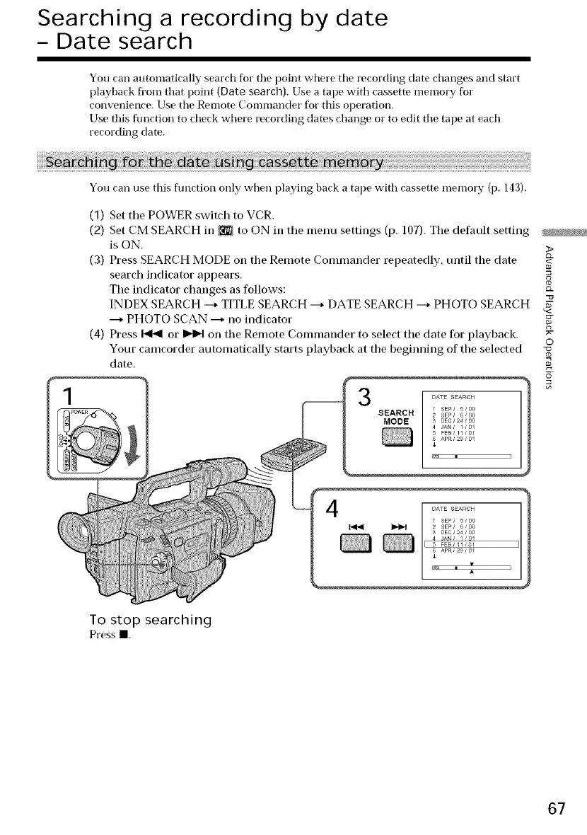 (3) Press SEARCH MODE on the Remote Commander repeatedly, until the date <