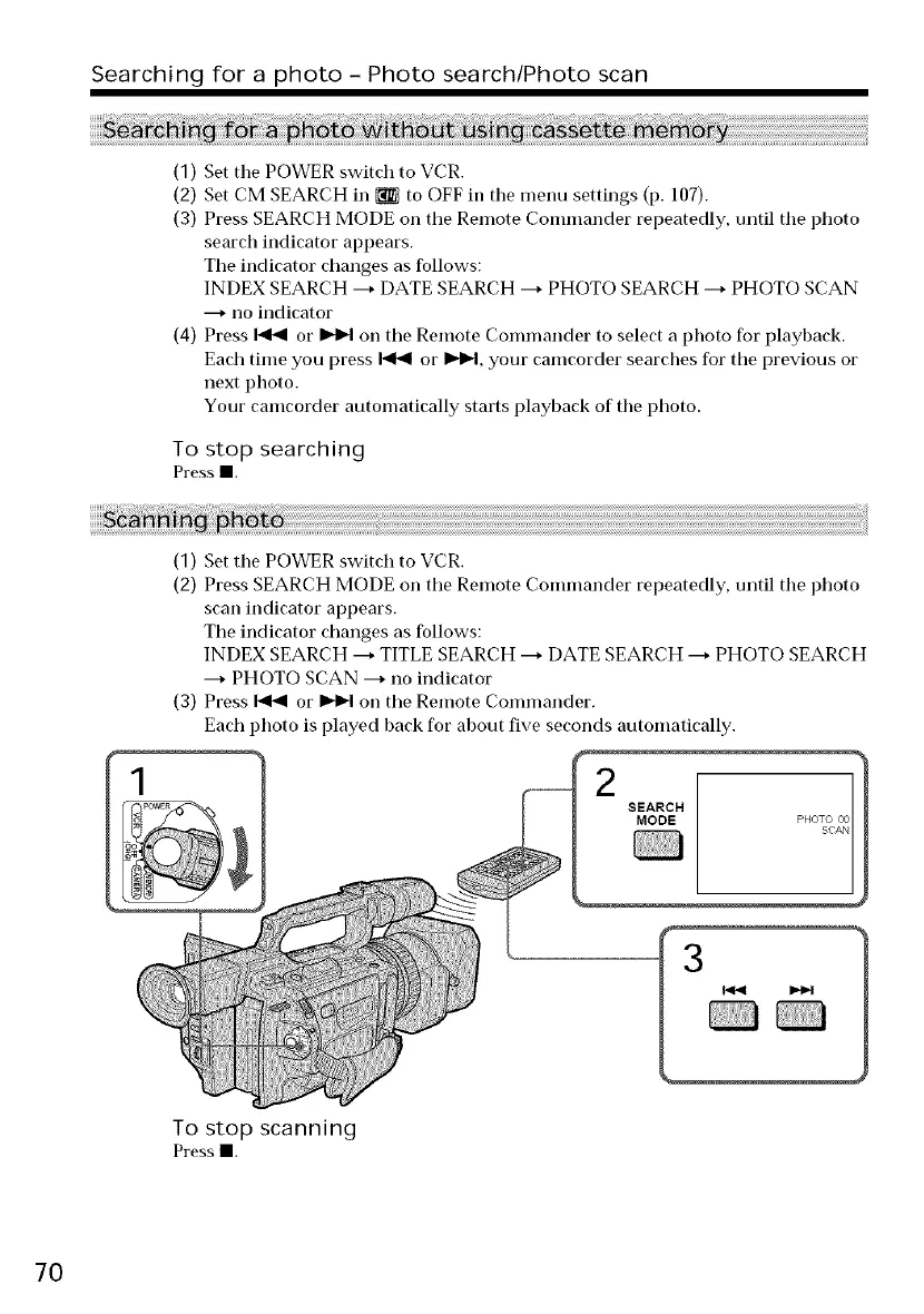 (2) Press SEARCH MODE on the Remote Commander repeatedly, until tim photo