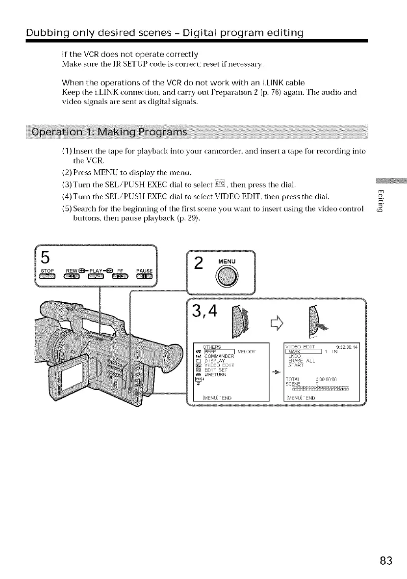 (4)Turn the SEL/PUSH EXEC dial to select VIDEO EDIT, then press the dial.