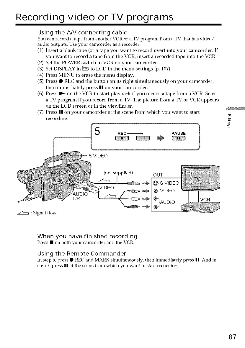(5) Press • REC and the I)utton on its right simultaneously on your camcorder,