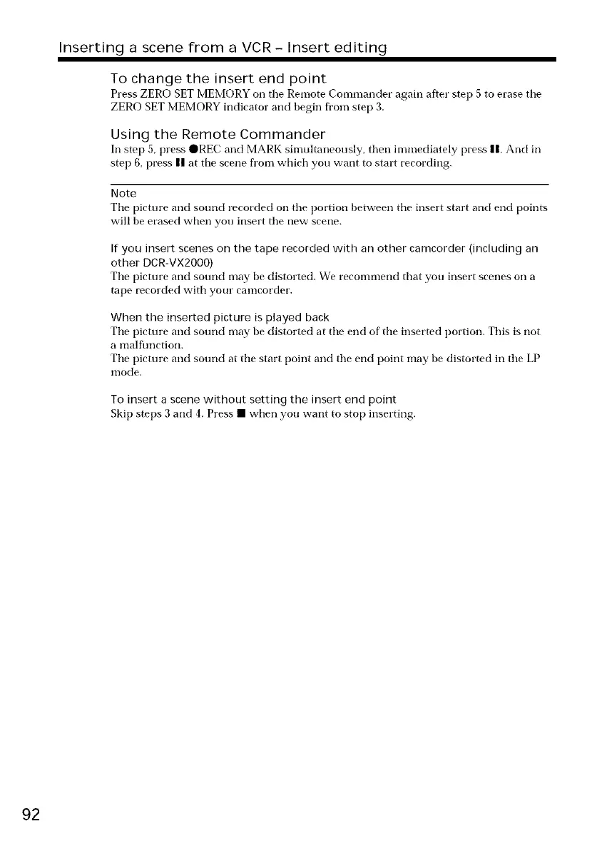 Tile pictl]re and sound may be distorted. We reconmlend that you insert scenes on a