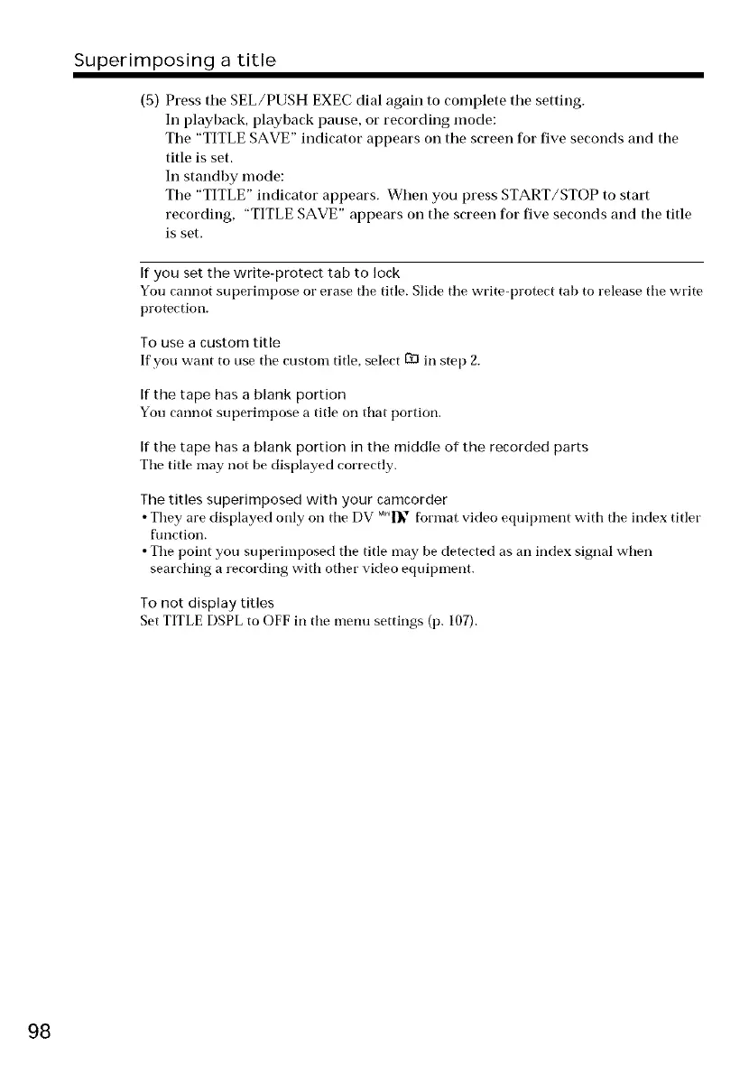 • They are displayed only on the DV M,,,|_ format video equipment with the index titler