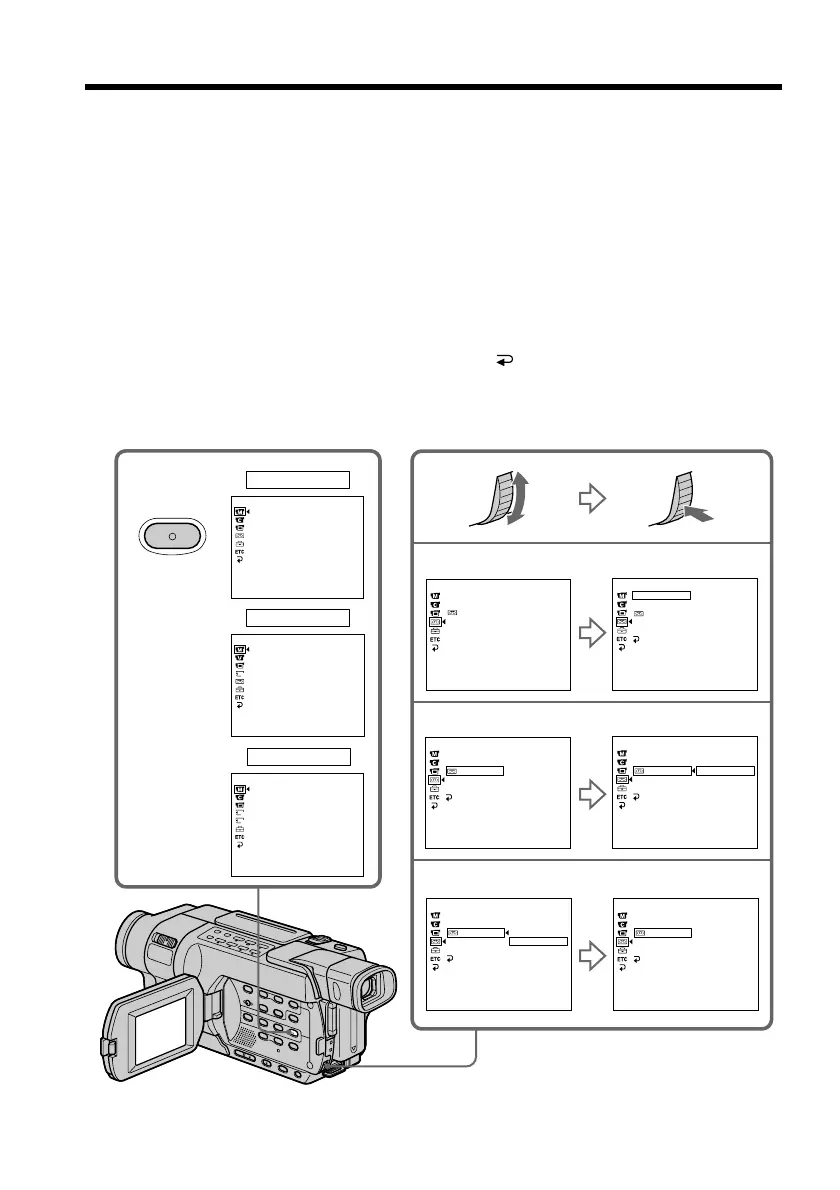 (1) In CAMERA, VCR/PLAYER or MEMORY mode, press MENU to display the