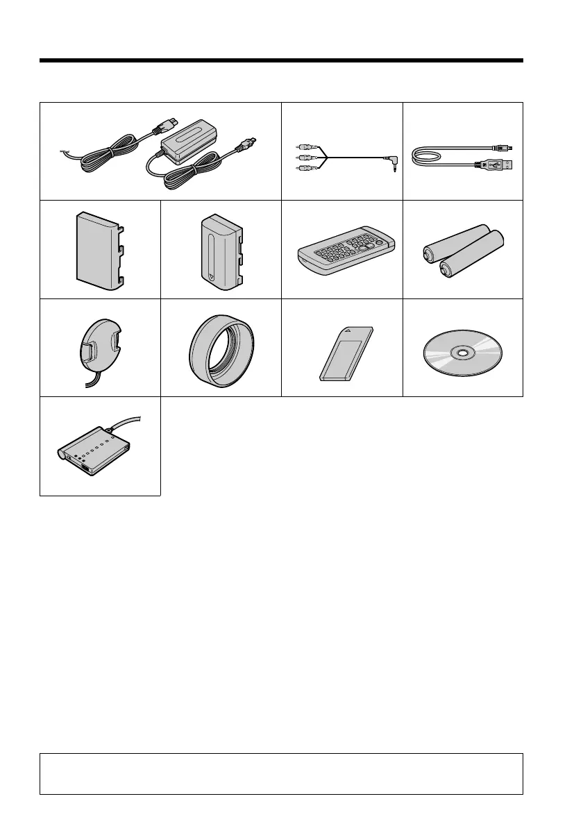 Make sure that the following accessories are supplied with your camcorder.