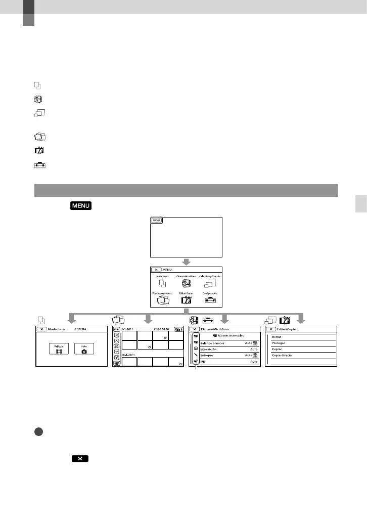Los menús [Cámara/Micrófono] y [Configuración] tienen subcategorías. Seleccione el icono