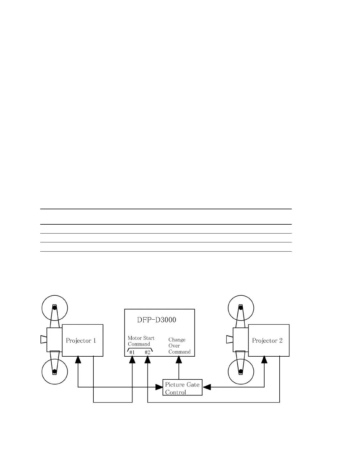 . Connect the Change over command output (gate switching control signal of the projector) of the