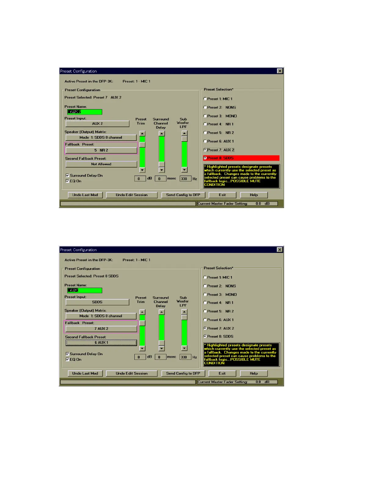 Fallback setting to “AUX2” in the preset corresponding to the SDDS.