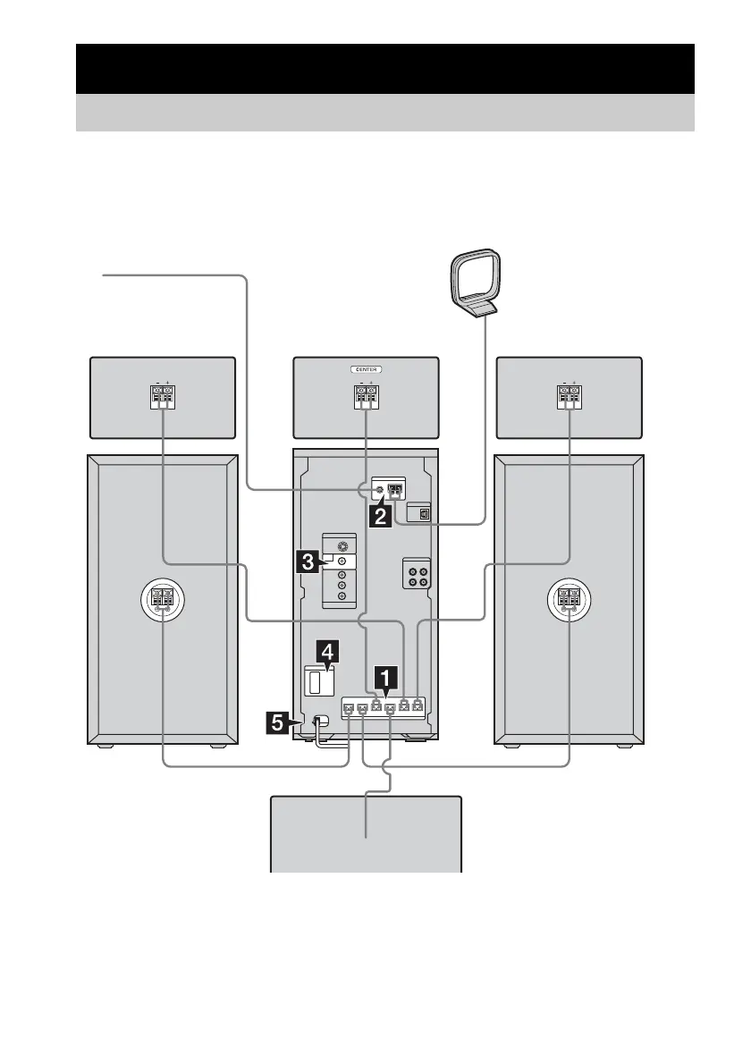 Perform the following procedures 1 to 6 to hook up your system using the supplied cords and