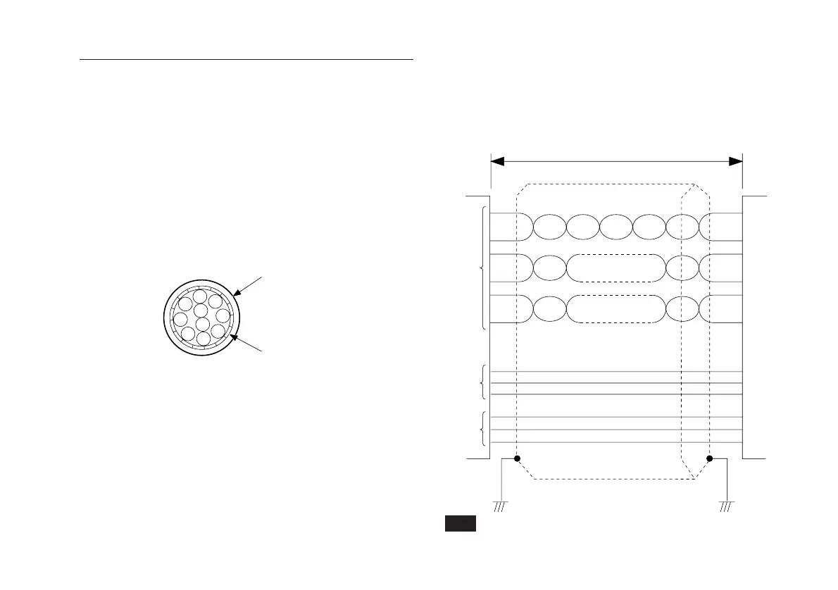出力コネクタに接続するケーブルは、図のようなシールドさ