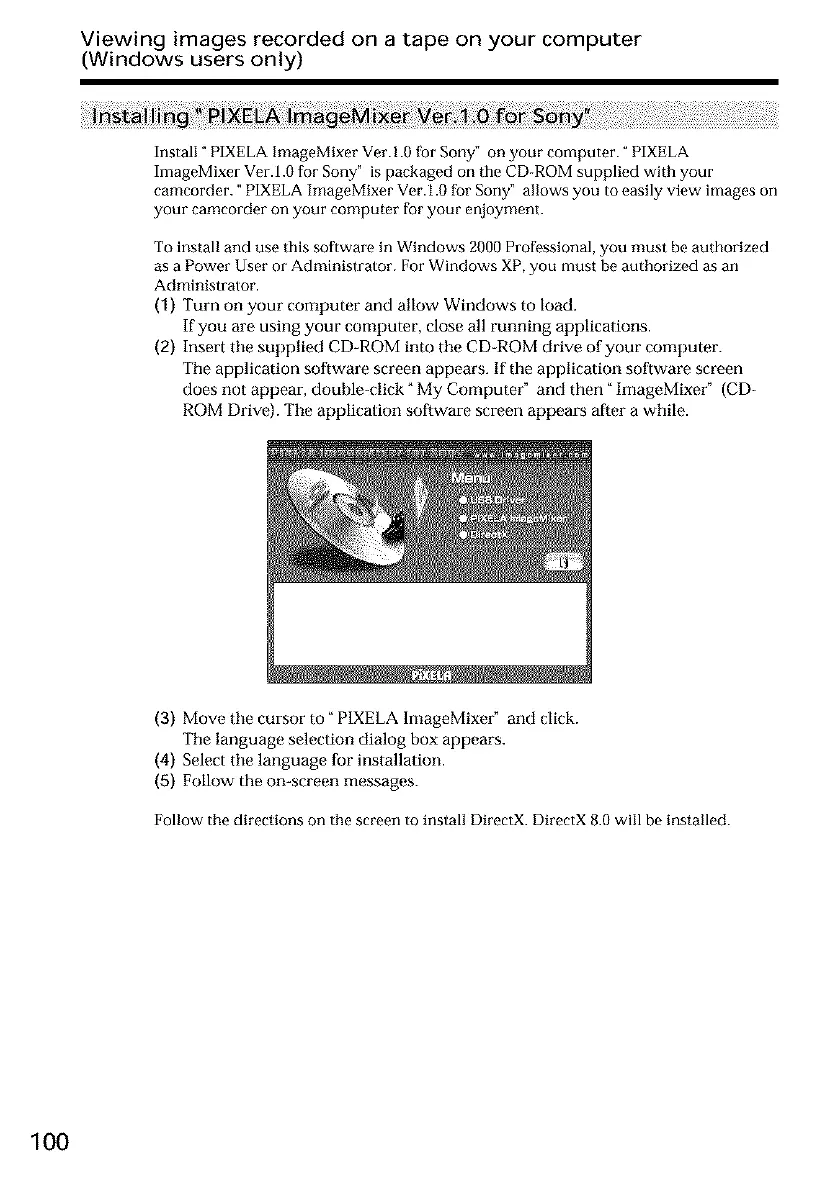 camcorder." PIXELA ImageMixer Ver.l.0 for Sony" allows you to easily view images on