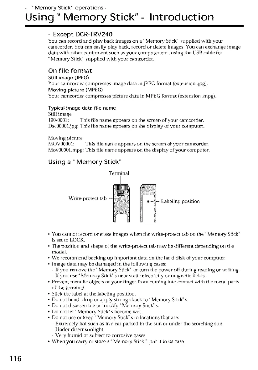 • You cannot record or erase images when the write-protect tab on the" Memory Stick"