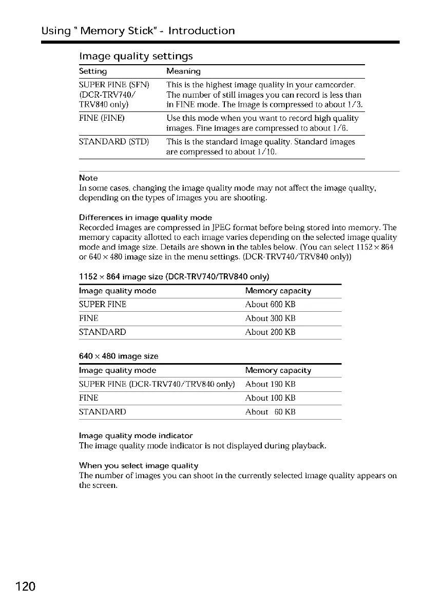 TRV840 only) in FINE mode. The image is compressed to about 1/3.