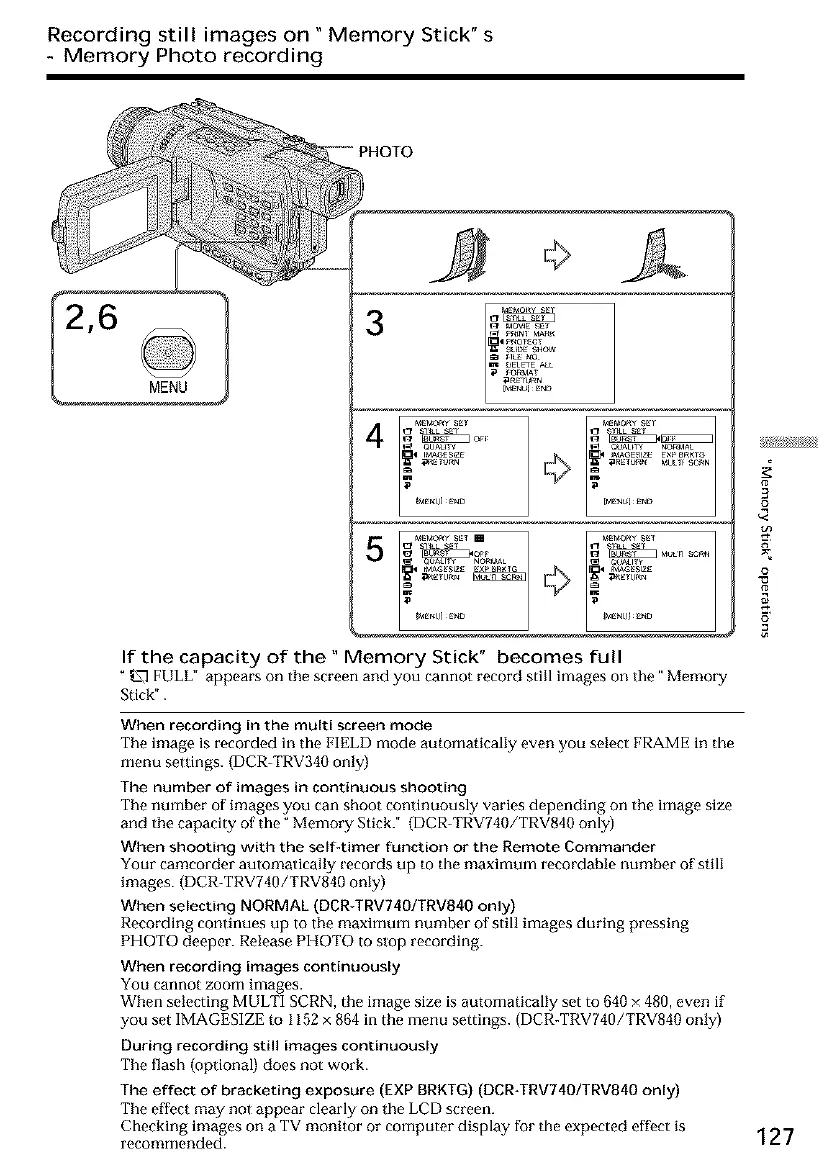 and the capacity of the" Memory Stick." (DCR TRV740/TRV840 only)