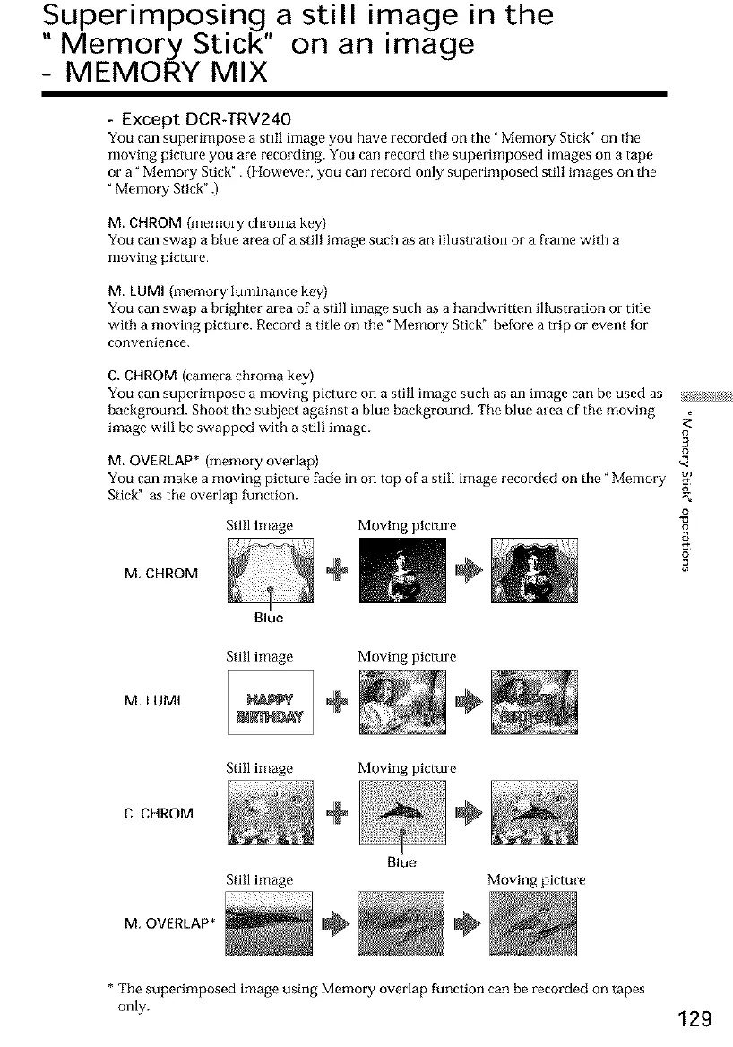 You can superimpose a still image you have recorded on tile" Memory Stick" on the