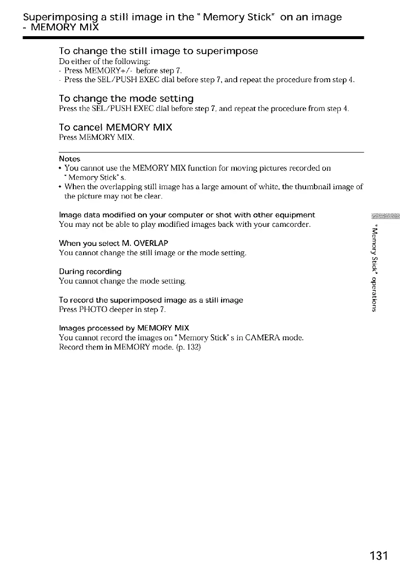 • You cannot use the MEMORY MIX function for moving pictures recorded on