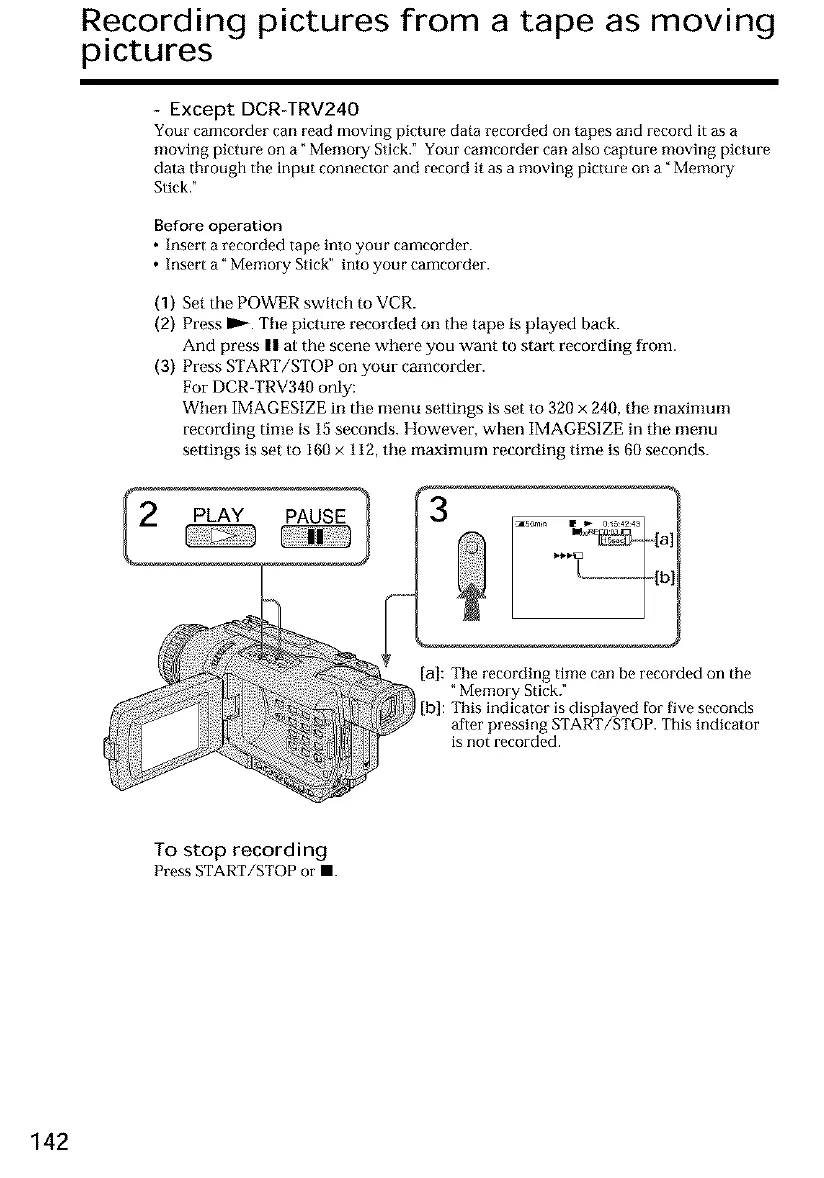 moving picture on a" Memory Stick." Your camcorder can also capture moving picture