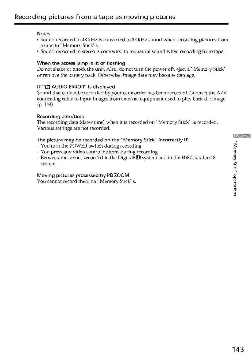 • Sound recorded in 4g kI{z is converted to 32 kl-{z sound when recording pictures from