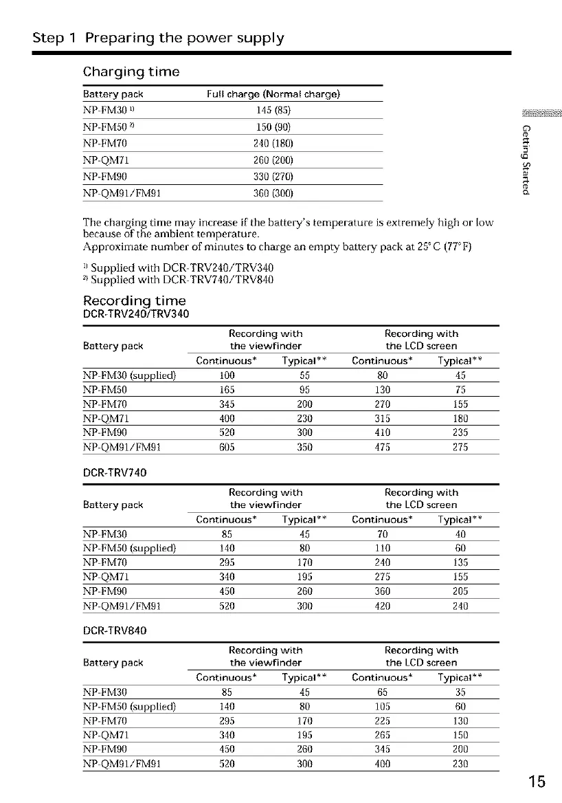 Approximate number of minutes to charge an empty battery pack at 25° C (77°F)