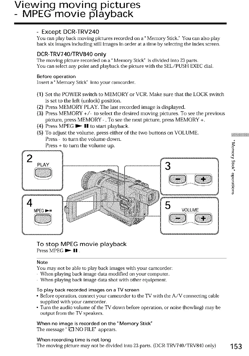 You can play back moving pictures recorded on a" Memol T Stick." You can also play