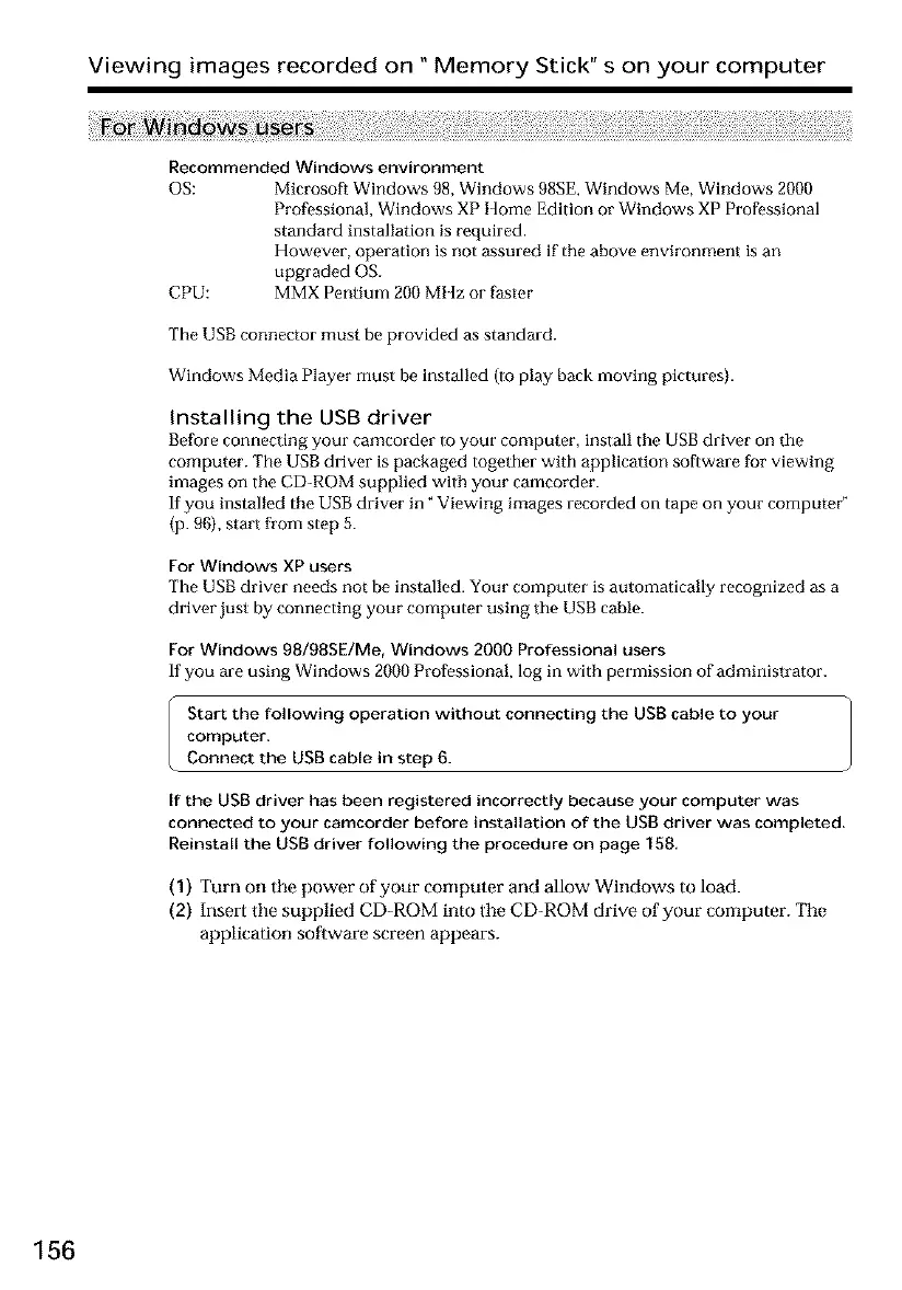 Ifyou installed the USB driver in" Viewing images recorded on tape on your computeff