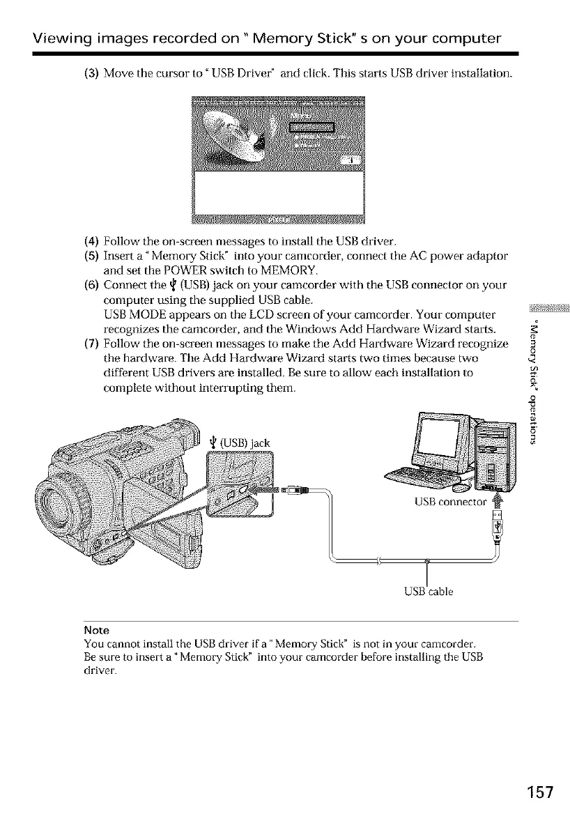 Be sure to insert a" Memory Stick" into your camcorder before installing the USB