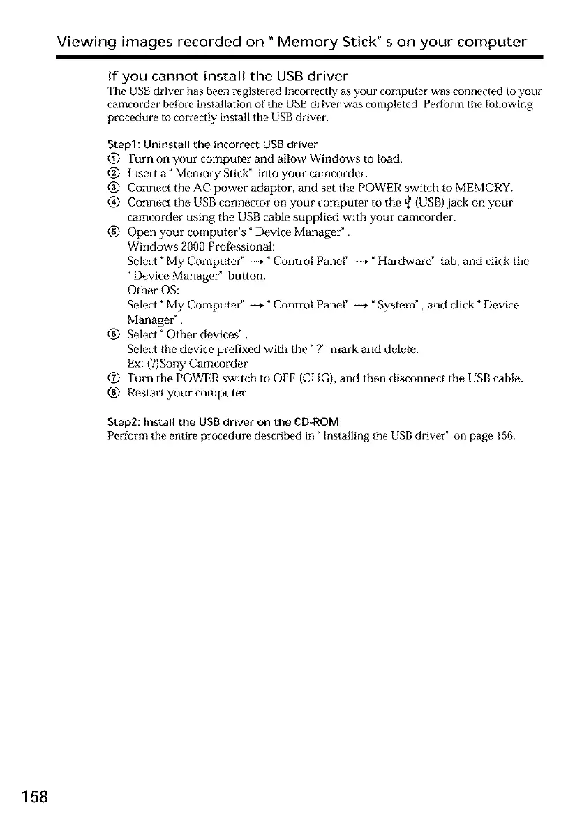 camcorder before installation of the USB driver was completed. Perform the [Mlowing