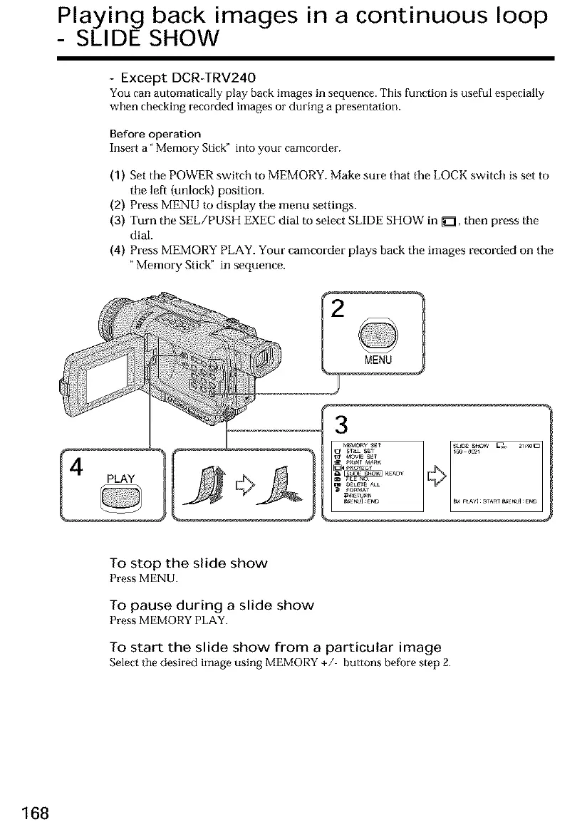 (3) Turn the SEL/PUSH EXEC dial to select SLIDE SHOW in _, then press tile