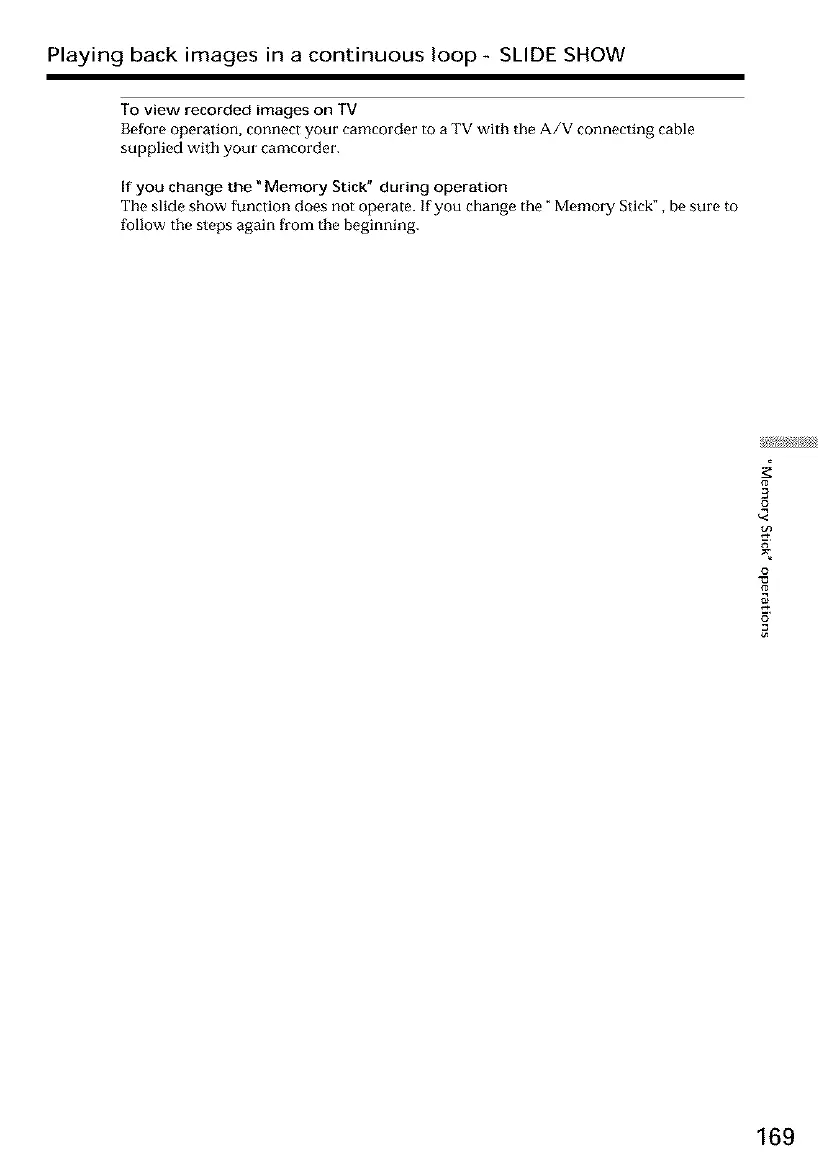 The slide show function does not operate. If you change the" Memory Stick", be sure to