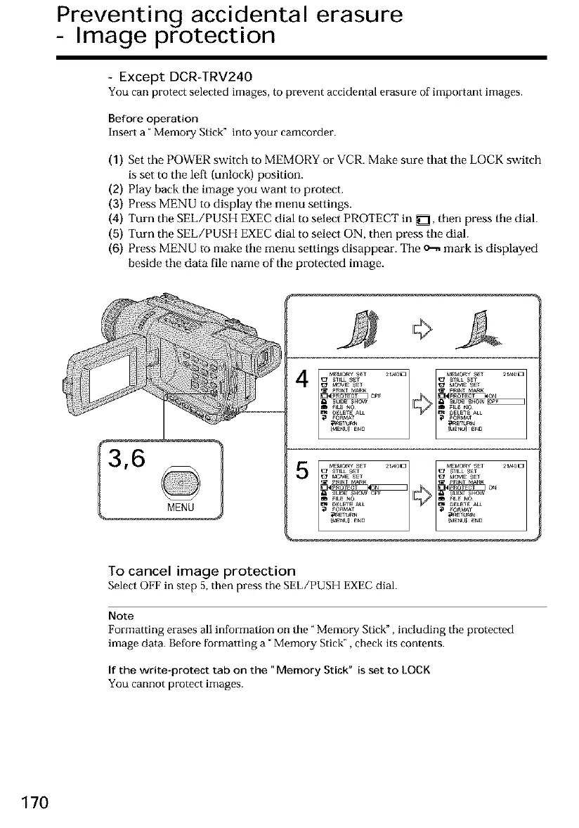 [f the write-protect tab on the "Memory Stick" is set to LOCK