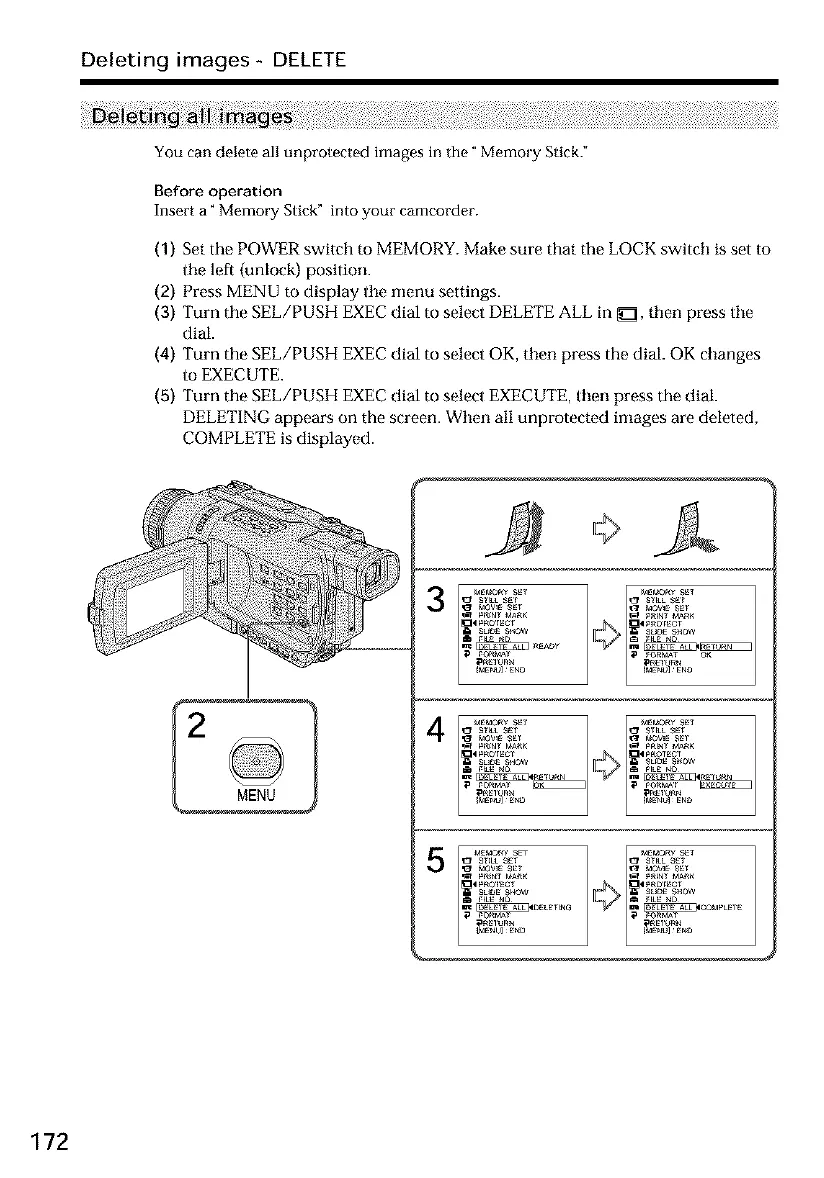 DELETING appears on the screen. When all unprotected images are deleted,