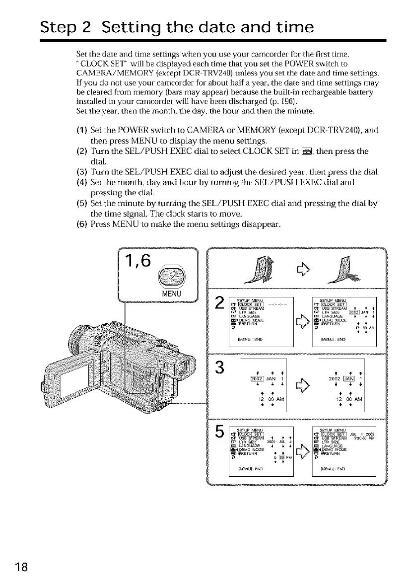 CAMERA/MEMORY (except DCR-TRV240) unless you set the date and time settings.