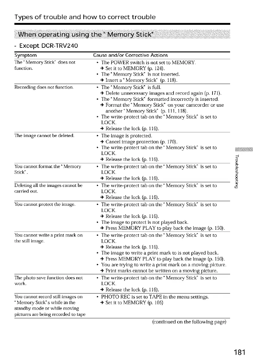 The" Memory Stick" does not * The POWER switch is not set to MEMORY.