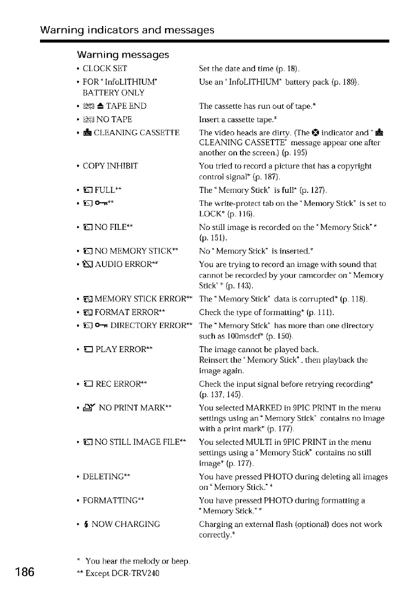 Use an "InfoLITHIUM" battery pack (p. 189).