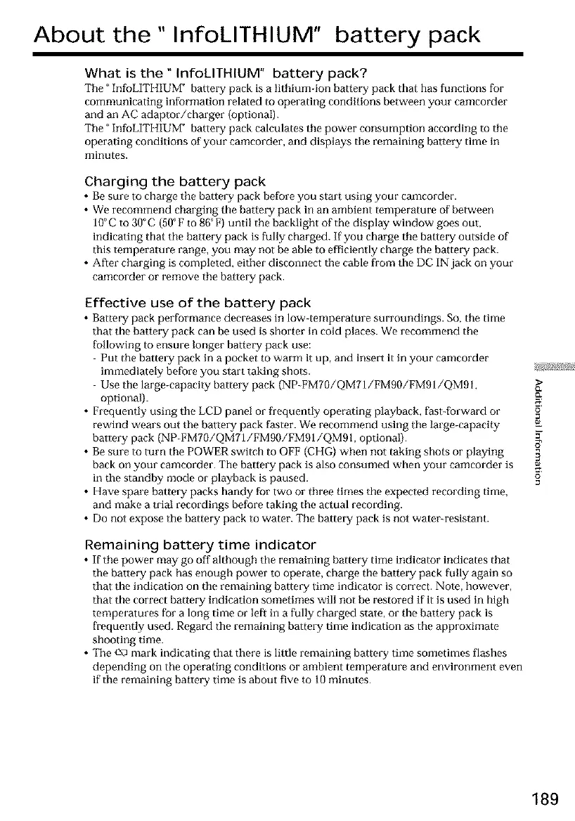 About the " InfoLITHIUM" battery pack