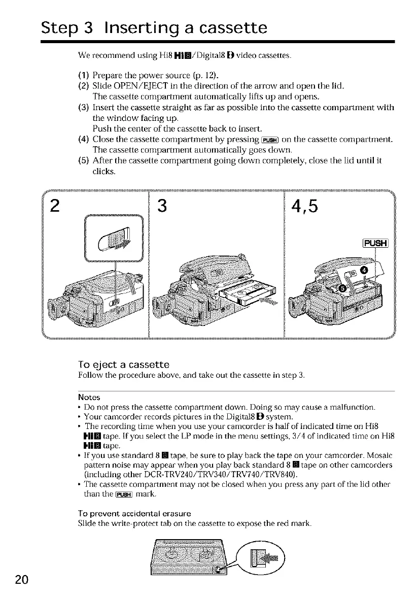 We recommend using Hi8 Him/Digital8 []1video cassettes.