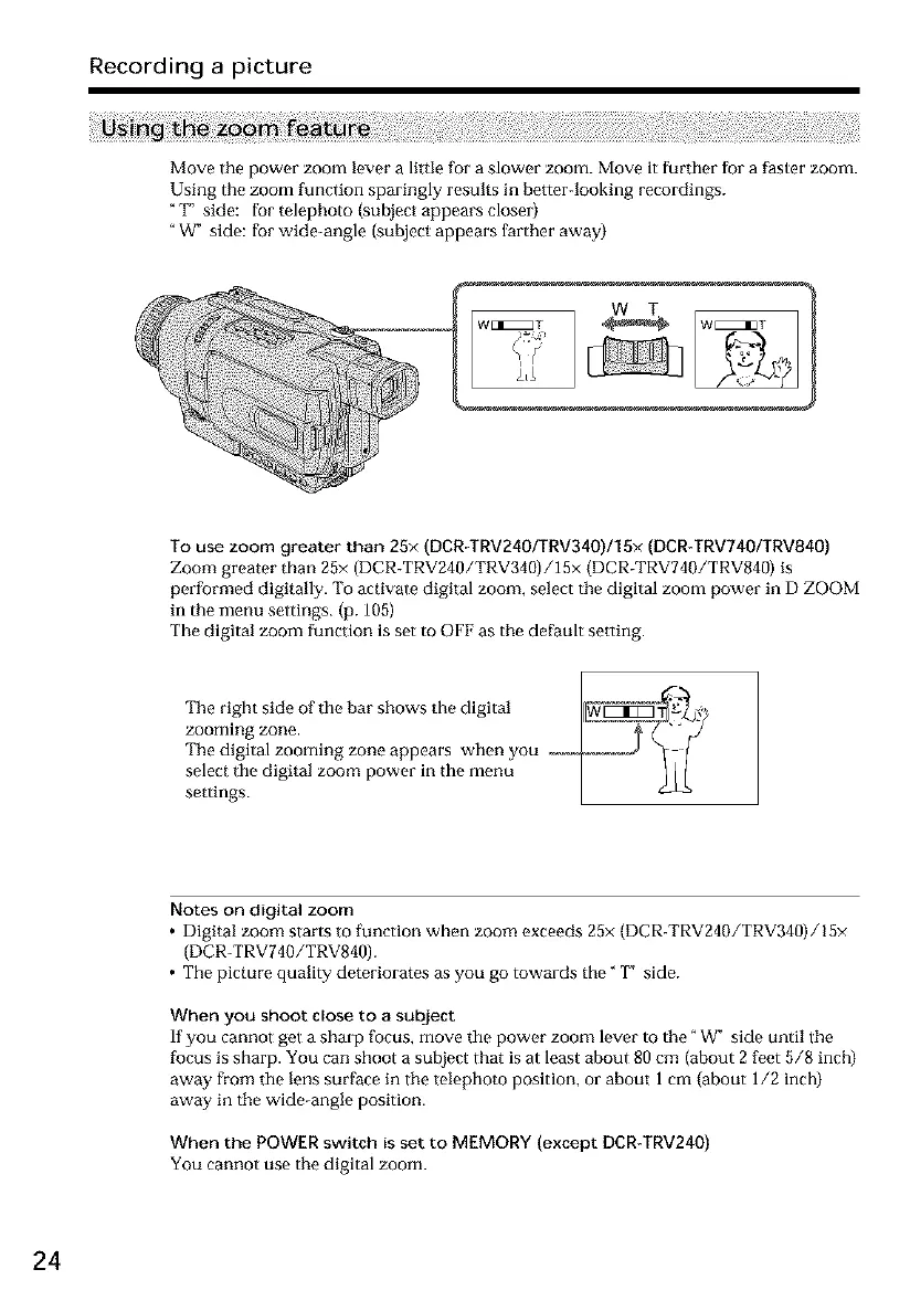 • Digital zoom starts to function when zoom exceeds 25x (DCR-TRV240/TRV340)/15×