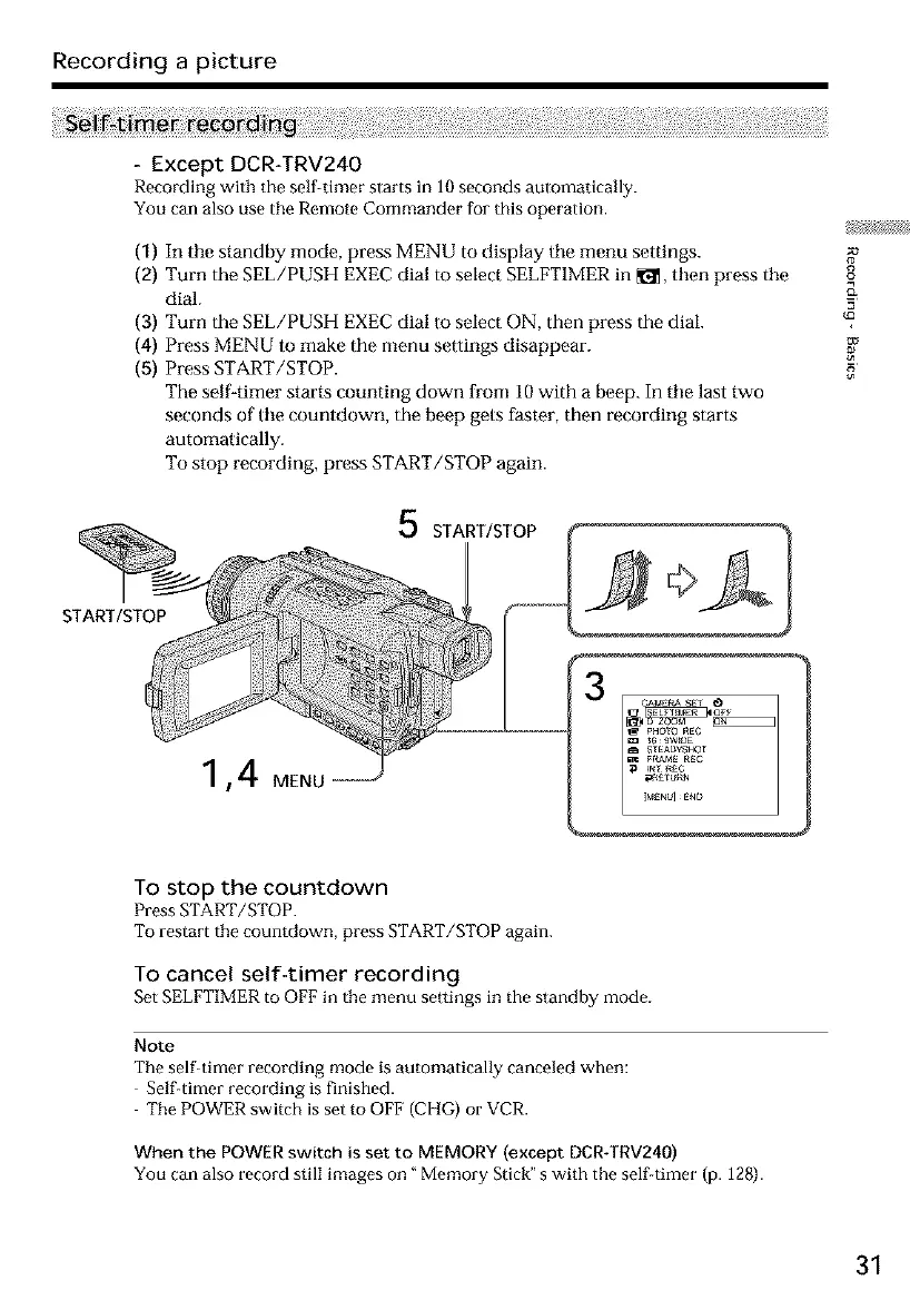 You can also record still images on" Memory Stick" s with the self-timer (p. 128).