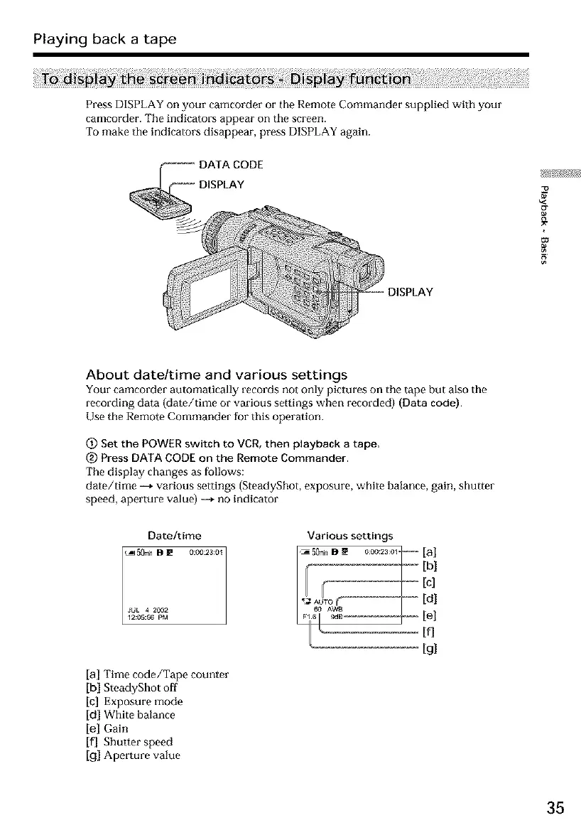 Press DISPLAY on your camcorder or the Remote Commander supplied with your