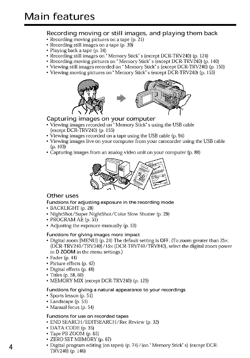 • Recording still images on" Memory Stick" s (except DCR-TRV240) (p. 124)